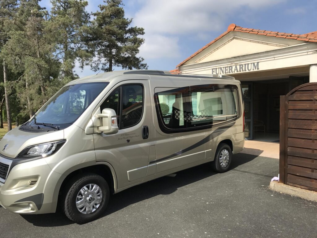 • Véhicules funéraires agréés avec professionnels en tenue, tables et registres à signatures